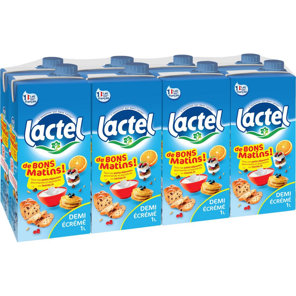 LACTEL Lait demi-écrémé 8x1L