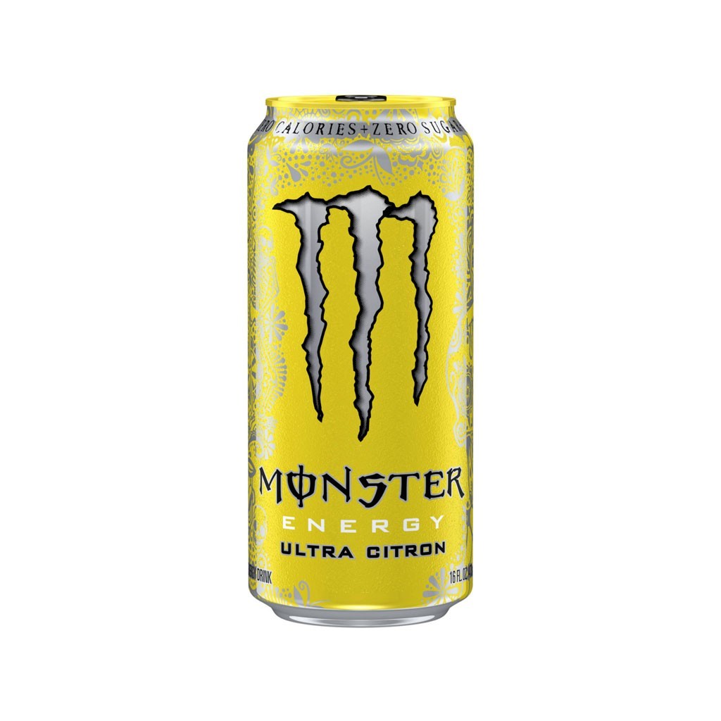 Monster Energy continue de soutenir la croissance d’un nouveau segment dans les energy drinks, celui des boissons faiblement caloriques. Monster Ultra Citron contient zéro sucre et zéro calorie et joue la carte du rafraîchissement, avec un goût léger et vif aromatisé au citron. Taurine, Extrait Panax Ginseng, L-carnitine, caféine, extrait de guarana, Glucuronolactone, inositol. Eau gazéifiée, érythritol, Taurine, acide citrique, arômes naturels, extrait de Panax Ginseng, citrate de sodium, L-carnitine L-tartrate, sorbate de potassium (conservateur), la caféine, sucralose, benzoate de sodium (conservateur), Niacinamide (Vit. B3), acésulfame de potassium, D-pantothénate de calcium (Vit. B5), sel, extrait de guarana, D-glucuronolactone, inositol, chlorhydrate de pyridoxine (Vit. B6), jaune 5, jaune 6, Cyanocobalamin (Vit. B12).