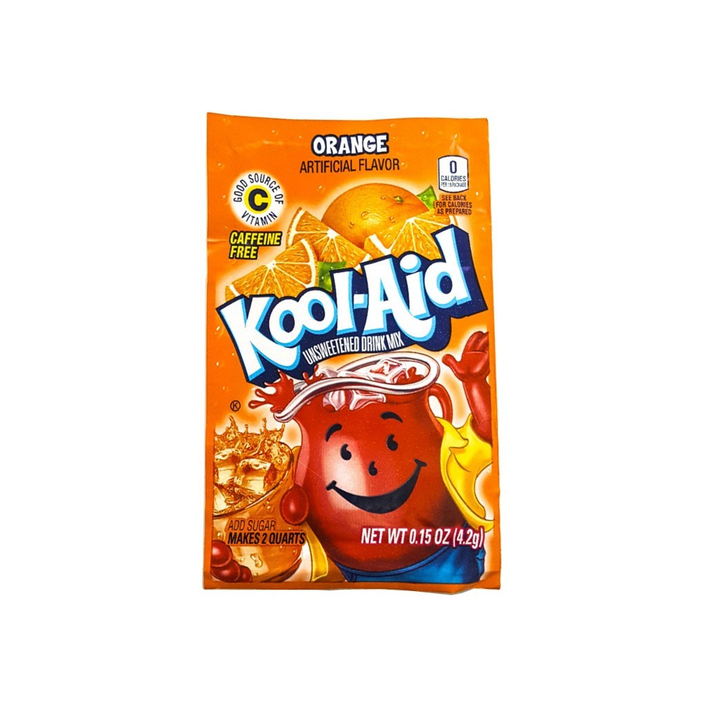 Versez la poudre Kool-Aid orange dans de l'eau pour obtenir une boisson très rafraîchissante. Acide citrique, maltodextrine, sel, phosphate de calcium, arôme naturel, acide ascorbique (vitamine C), arôme artificiel, colorant artificiel (E102, E129), BHA (Préserve la fraîcheur).