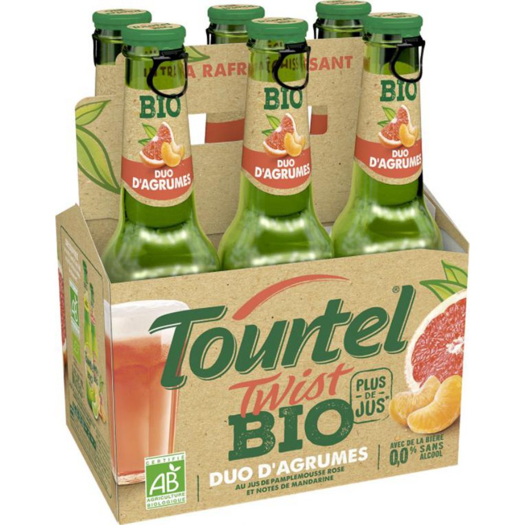 TOURTEL Bière Twist sans alcool aromatisée duo d'agrumes bio 27.5cl (pack de 6)