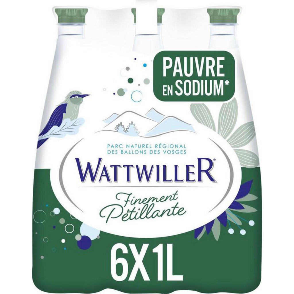 WATTWILLER Eau Minérale Finement Pétillante (pack de 6 bouteilles de 1L)