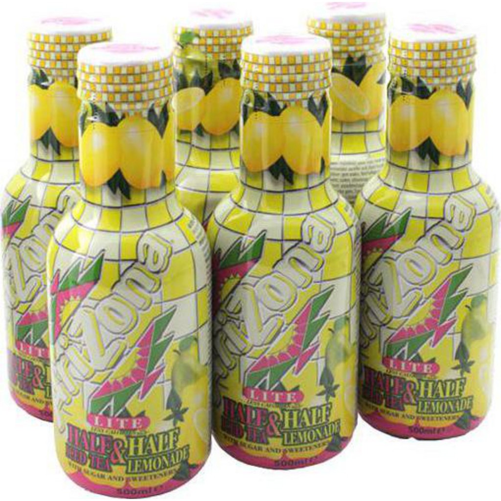 Boisson à 50% de thé glacé et 50% de citronnade. Les boissons Arizona sont réalisées à partir d'ingrédients 100% naturels, sans saveur artificielle, colorant ou conservateur. Produit à base de thé, infusé avec de vraies feuilles. Tous les produits sont préparés au moyen du procédé d'embouteillage à chaud, supprimant ainsi les besoins en conservateurs. Profitez des bienfaits du thé dans une boisson saine et rafraîchissante!. Eau, sucre, jus de citron à base de concentré (3%) jus de poire à base de concentré (2%), acidifiant : acide citrique, antioxydant : acide ascorbique, extrait de thé noir (0.08%), arôme naturel, sucralose, acésulfame, gomme d'accacia.